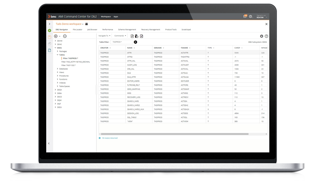 By presenting Db2 database information in an intuitive graphical user interface, BMC AMI Command Center for Db2 makes database information easier to use, faster to manipulate, and simple to learn.