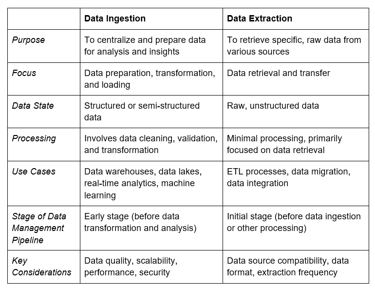 Data extraction focuses on retrieving raw data from disparate sources – without inherently offering any sort of analysis, intelligence, or insights. In other words, the end product of data extraction is raw data.
